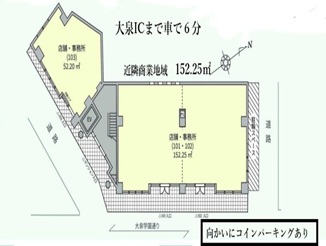 近隣商業地域で事業利用しやすく、大泉ICまで車で約6分の立地です。